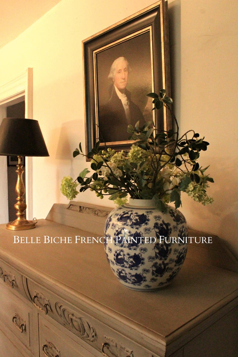 Colourwise, artisan painted, in a hand mixed shade of our timeless in-house, 'French Ash Grey' - which is made to our own, unique BB recipe - this mid-charcoal grey is comparable in tone to F&B's 'Dove Tale'.