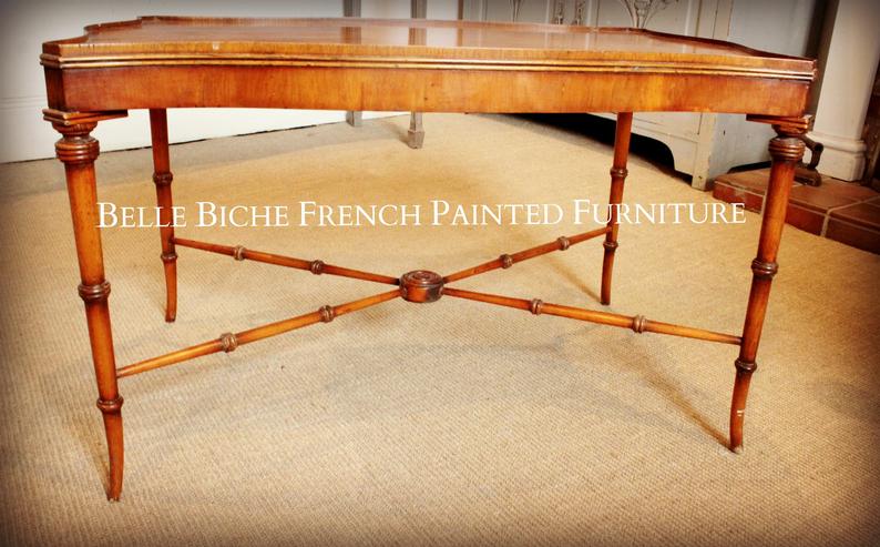 BIJOU ENGLISH WALNUT CHINESE CHIPPENDALE STYLE FAUX BAMBOO COFFEE TABLE