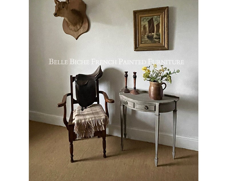French Ash Grey George III Style Two Drawer Demi Lune Side Table
