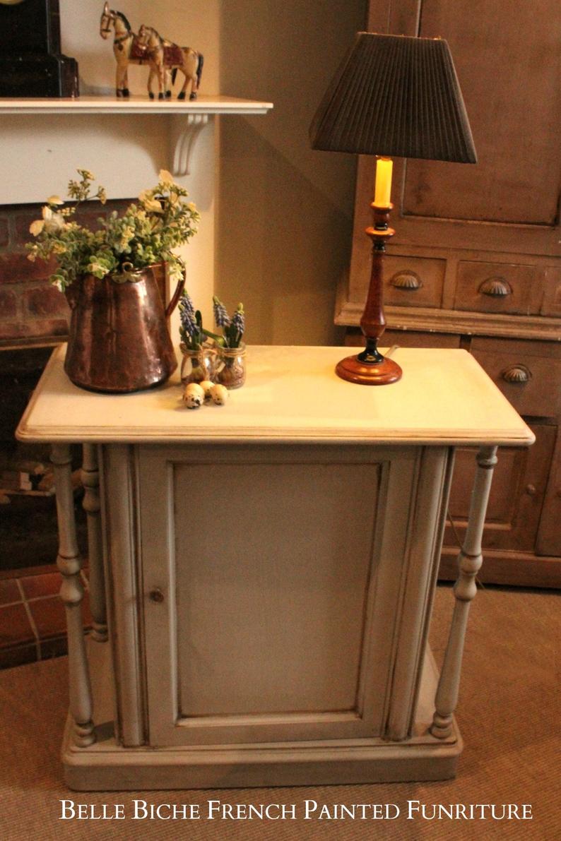 The piece has been artisan hand painted in a light 'Gustavian Grey.