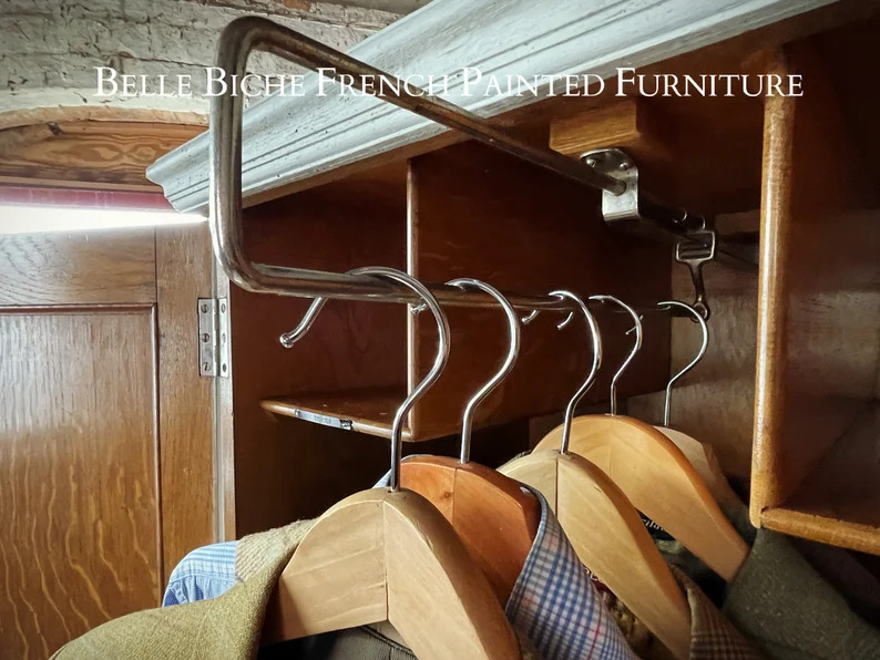 The base section, having a compartment fitted with several bars, for trousers, and not least, complete with a really fab. labelled box for shirts.