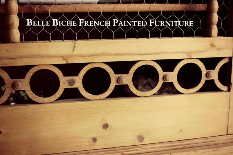 Featuring a beautiful, single, chicken wire decorated door, enclosing a large cupboard space, with two inner shelves, which would allow perfect storage of plates and dishes.