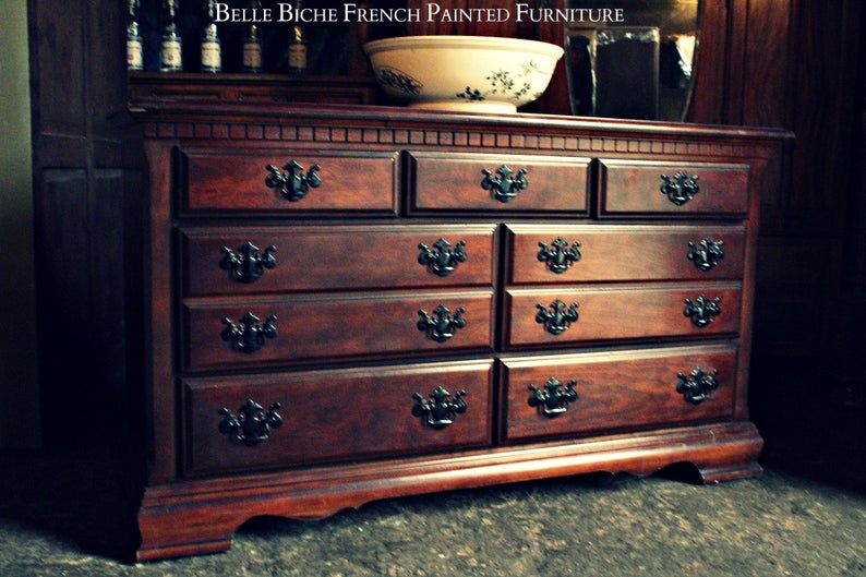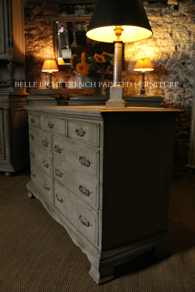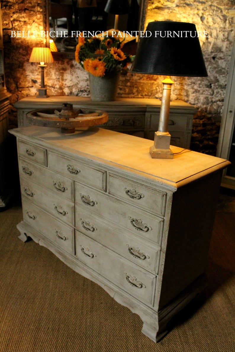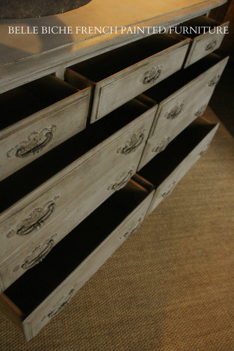 Its two, deep, central drawers are double fronted, having 4 handles. Therefore, when closed, give the impression of being 4, individual drawers.