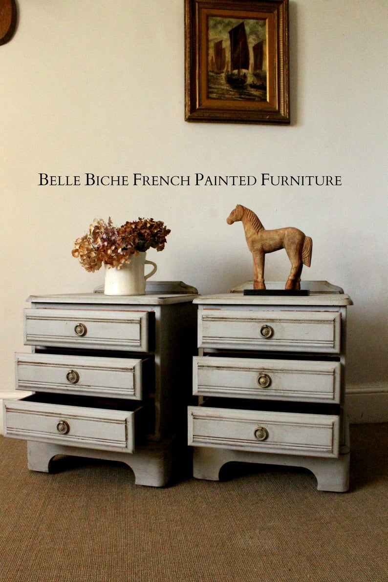 Three Drawer Gustavian Grey Nightstands